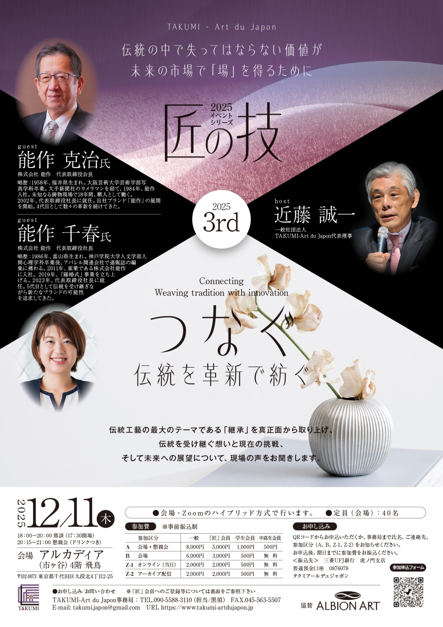 会費:会場(弁当付き)一般8,000円、「匠」会員7,000円